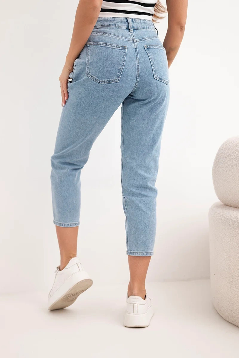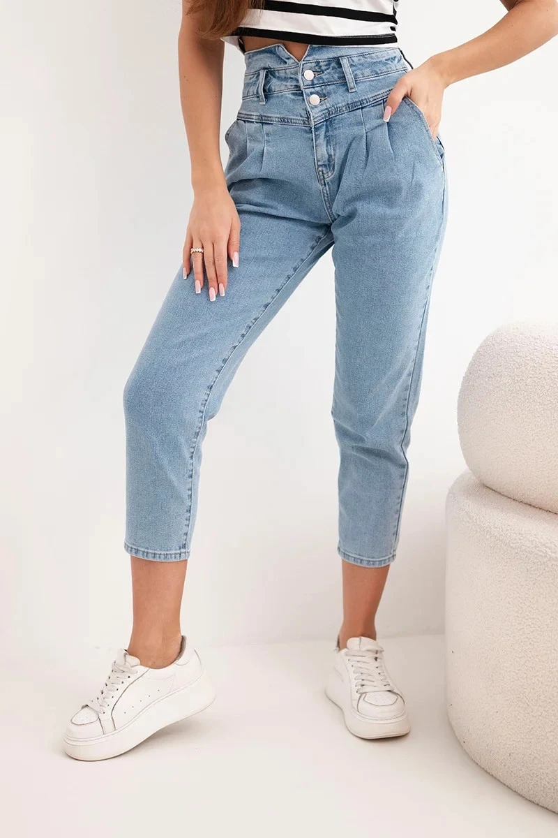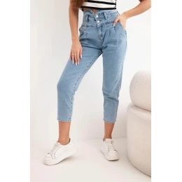 Dámské jeansové kalhoty paperbag s dvojitým zapínáním M.sara jeansové modré