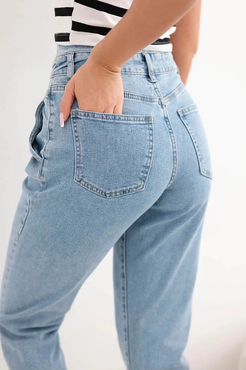Tyto stylové dámské džíny s vysokým pasem a dvojitým zapínáním jsou skvělou volbou pro ženy, které ocení módní vzhled a pohodlí každodenního nošení. Střih typu paperbag s jemným nařasením v pase krásně zvýrazňuje postavu a mírně zúžené nohavice opticky prodlužují nohy.