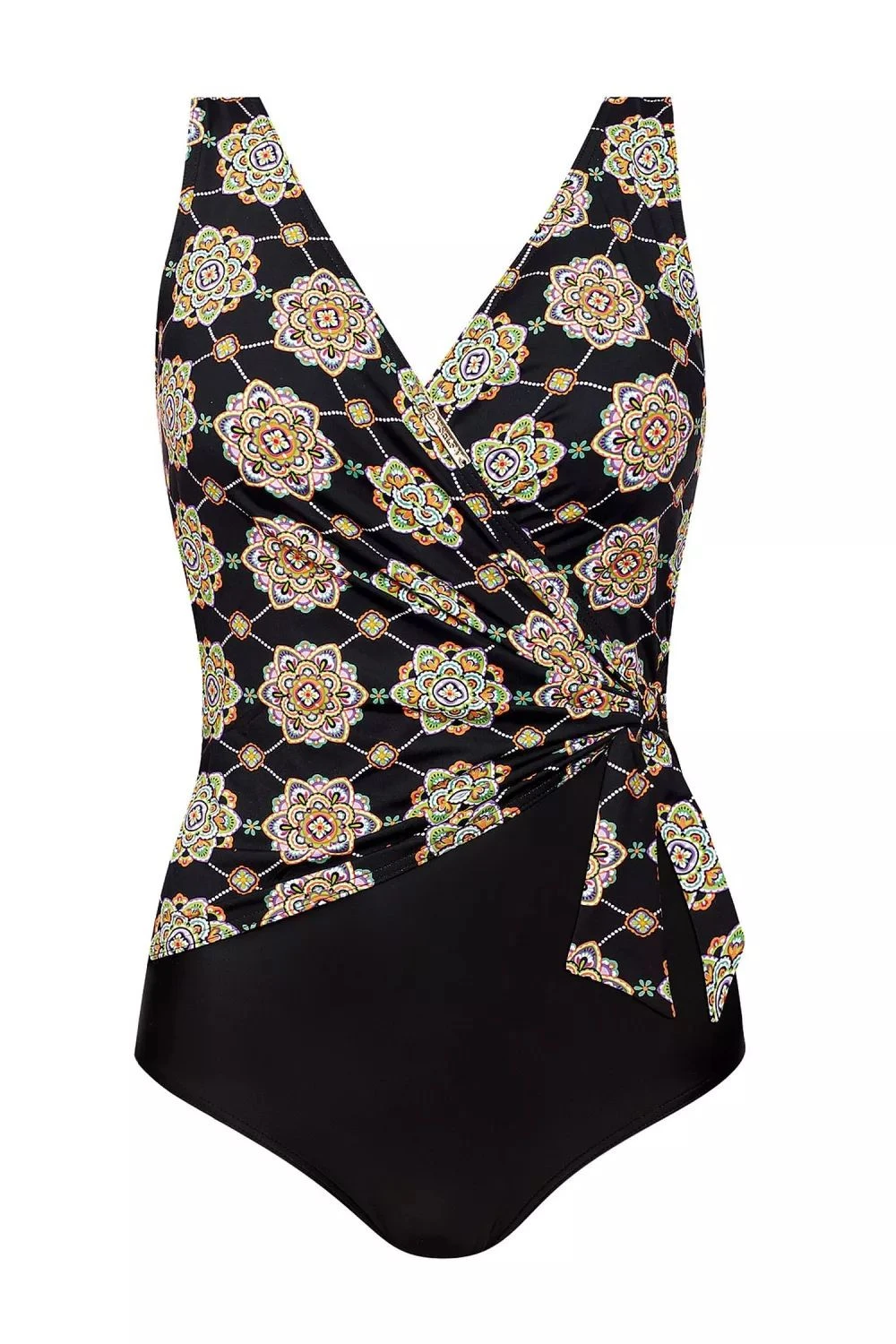 Dámské jednodílné plavky Thailand3 1069F23 11 SELF - černá barva - polstrované košíčky poskytují pohodlí a oporu - tvarující volánky opticky zeštíhlují postavu - odolné vůči chlóru a UV záření - rychleschnoucí materiál