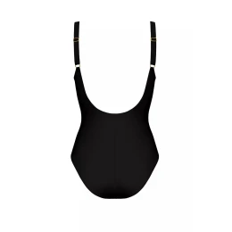 Dámské jednodílné plavky Thailand3 1069F23 19 SELF - černá barva - polstrované košíčky poskytují pohodlí a oporu - tvarující volánky opticky zeštíhlují postavu - odolné vůči chlóru a UV záření - rychleschnoucí materiál
