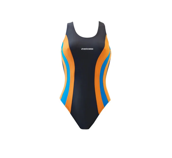 Produkt Dámské jednodílné plavky 715 - Sesto Senso prodáváme v těchto velikostech: M, XLa barvách grafit-oranžová-modrá5902385305785, 5902385305808