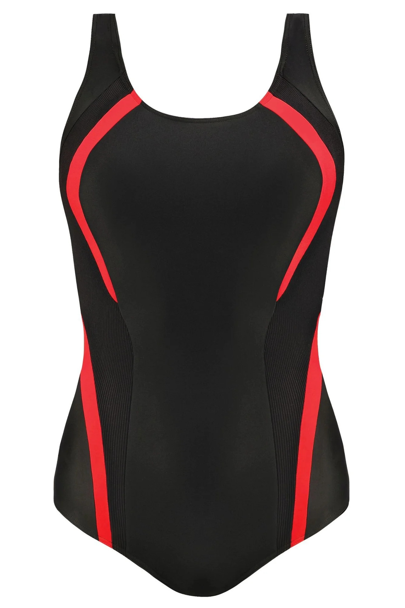 Dámské jednodílné plavky Atlantic sport 34A1 49 SELF - černá barva - z vysoce jakostního materiálu - jemně vyztužené košíčky - barevné vsadky na bocích - širší ramínka s regulací - rychleschnoucí materiál, odolný proti chlóru a slunci