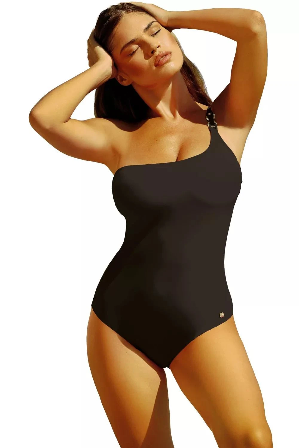 Dámské jednodílné plavky Bayamon9 7010BM9 19 SELF - černá barva - košíčky bez kostic - nastavitelné a neodepínatelné ramínko - zdobené zlatými kroužky