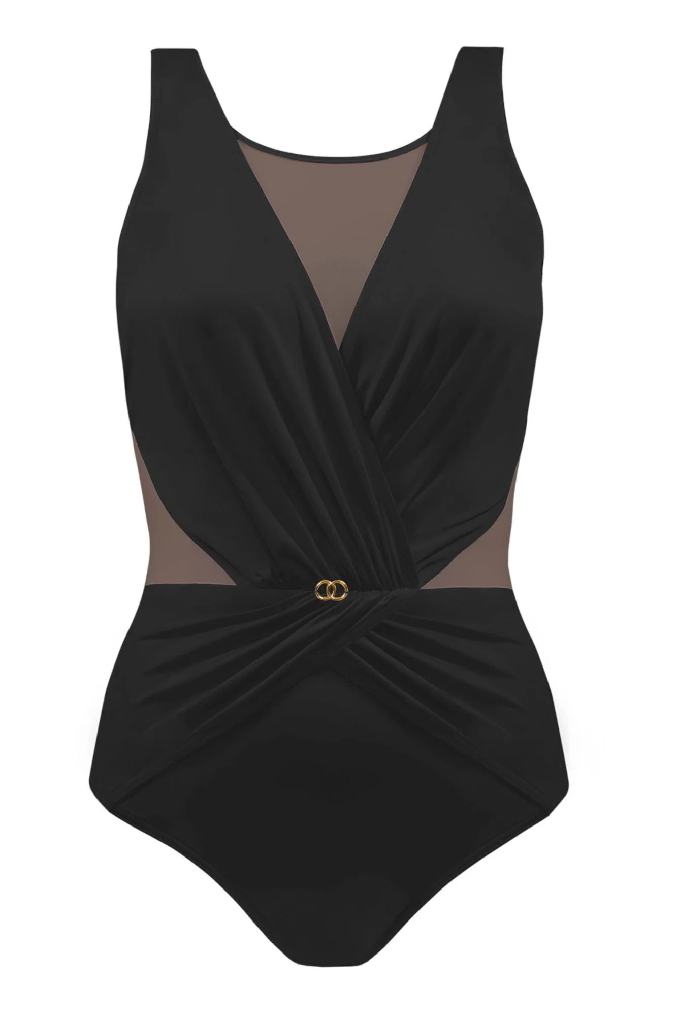 Dámské jednodílné plavky Fashion 7 1006V 19 SELF - černá barva - z vysoce kvalitního mikrovlákna - mírně vyztužené košíčky - překřížený dekolt s řasením - nastavitelná široká ramínka - rychleschnoucí materiál, odolný proti chlóru a slunci