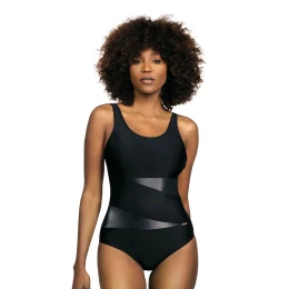 Dámské jednodílné plavky S36 23 Fashion sport SELF - černá barva - sportovní střih - široká a posuvná ramínka - vyztužené košíčky - vsadky z mikrovlákna