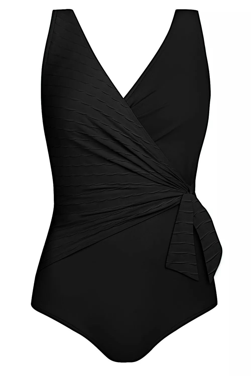 Dámské jednodílné plavky Thailand3 1069F23 19a SELF - černá barva - polstrované košíčky poskytují pohodlí a oporu - tvarující volánky opticky zeštíhlují postavu - odolné vůči chlóru a UV záření - rychleschnoucí materiál