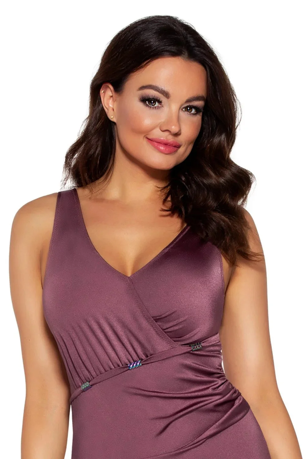 Dámské jednodílné plavky 49 Hot Ava - vyrobené z mikrovlákna - přední díl modelu je z vnitřní strany podšitý vrstvou síťoviny - asymetrický střih - opticky zeštíhlí postavu - všitý top s košíčky udrží poprsí na správném místě - zadní část i přes hluboké vykrojení na zádech hladce přilnou k tělu a zabraňují klouzání ramínek