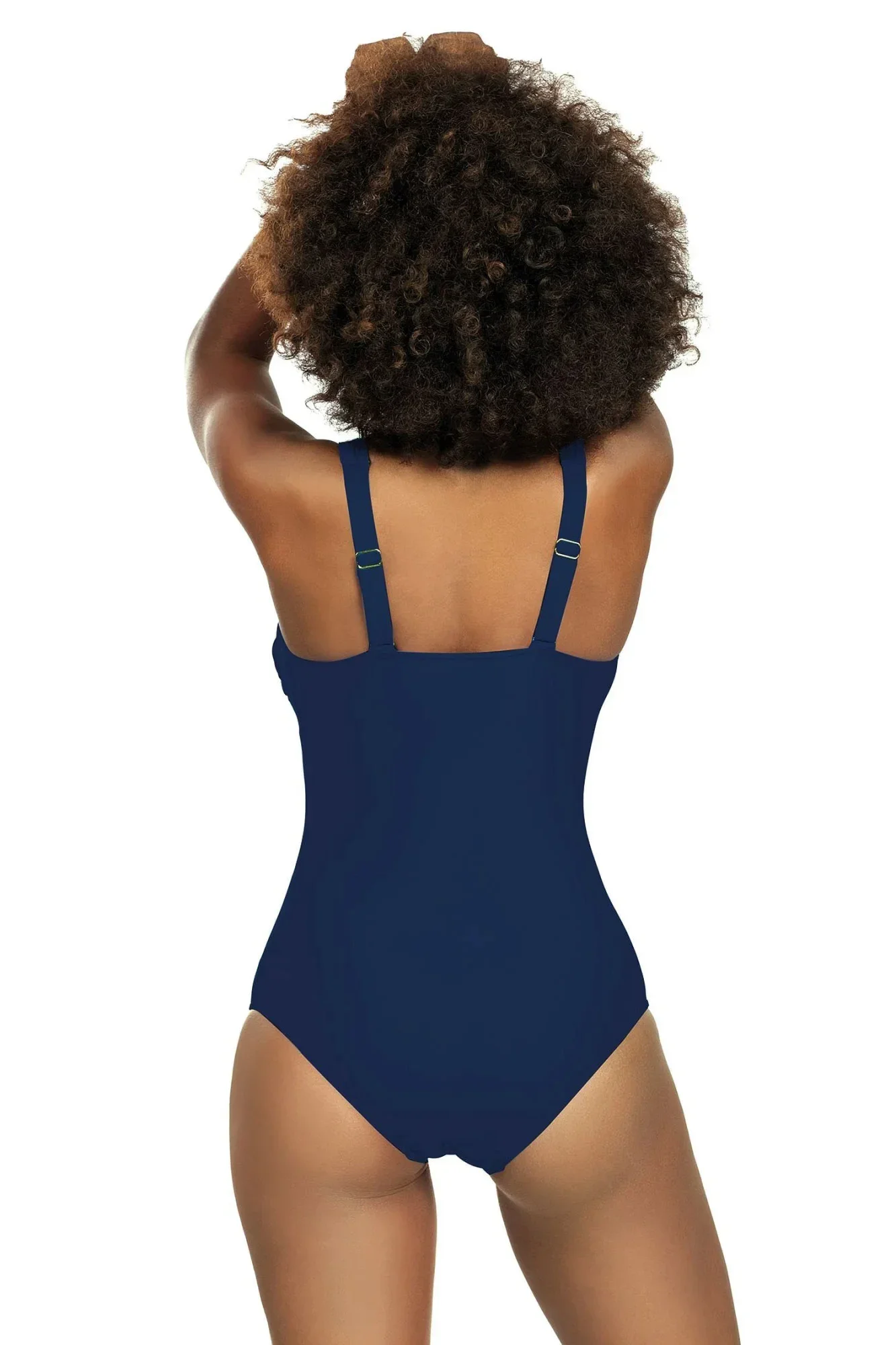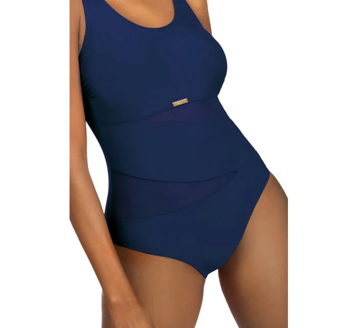Dámské jednodílné plavky S36 31 Fashion sport SELF - tmavě modrá barva - sportovní střih - široká a posuvná ramínka - vyztužené košíčky - vsadky z mikrovláknaMateriálové složení: 78% polamid + 22% elastan