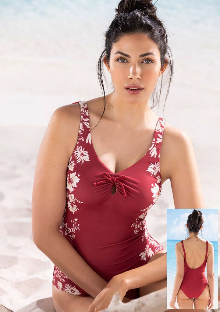 Dámské jednodílné plavky italské značky Siélei. Plavky mají všitou podprsenku, která má vyztužené košíčky. Pod košíčky je zpevňující pásek, aby prsa dobře držela. Plavky mají délkově nastavitelná ramínka. Plavky jsou celé podšité rychleschnoucí látkou. Plavky jsou v hezké bordové barvě a na bocích jsou světlé květy, který dělají zajímavý kontrast plavkám.