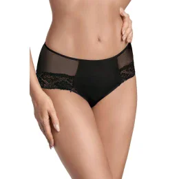 Klasické vysoké kalhotky 029 Ewana - černá barva - klasický střih - jsou na bocích plnější - jsou vyrobené z hladkého mikrovlákna, jemné tylové síťoviny a z efektní krajky s květinovým motivem