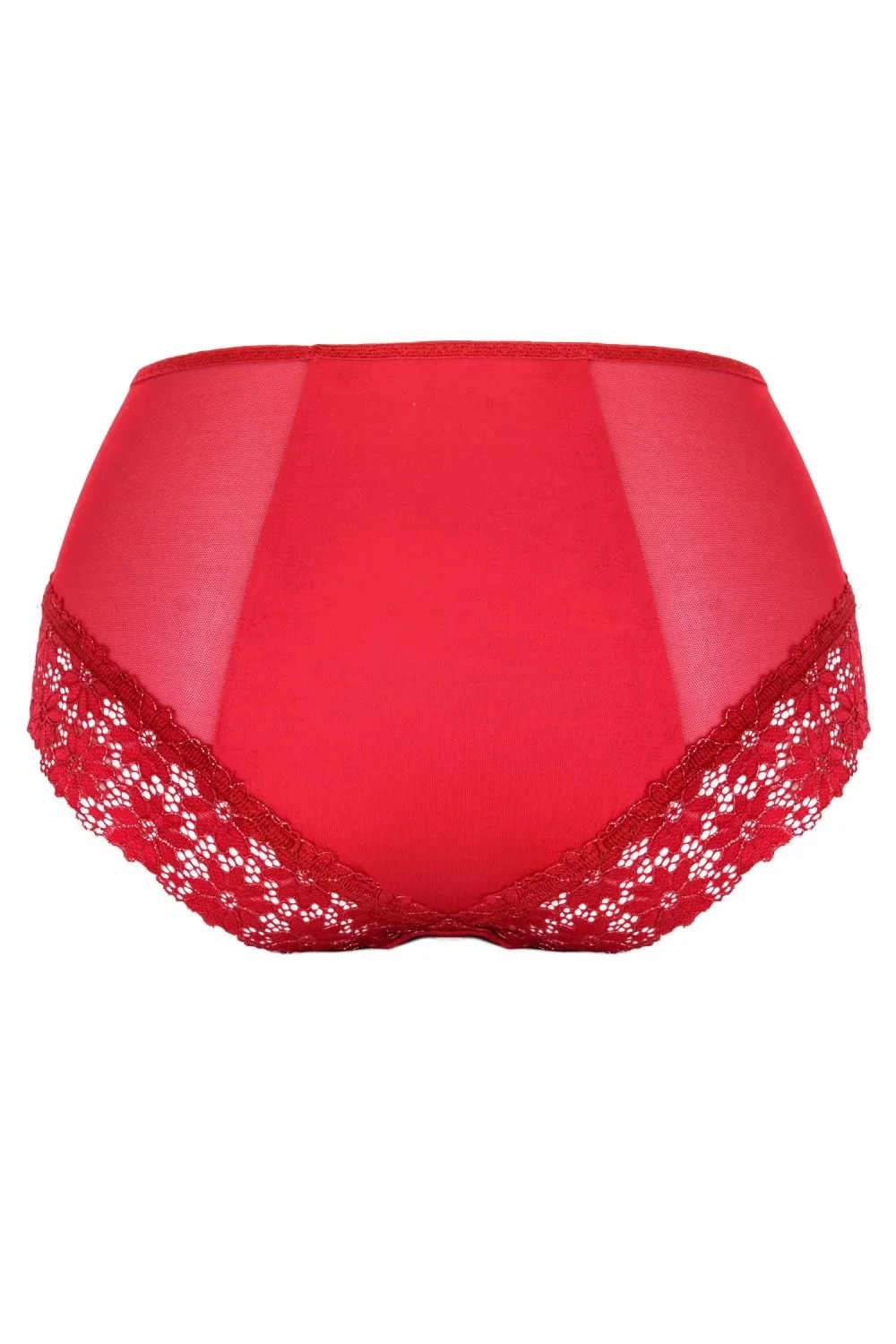 Klasické vysoké kalhotky 029 Ewana - červená barva - klasický střih - na bocích plnější - vyrobené z hladkého mikrovlákna, jemné tylové síťoviny a z efektní krajky s květinovým motivemMateriálové složení: 85% polyester + 15% elastan