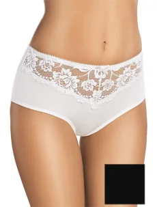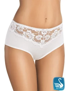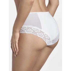 Klasické vysoké kalhotky 029 Ewana - bílá barva - klasický střih - jsou na bocích plnější - jsou vyrobené z hladkého mikrovlákna, jemné tylové síťoviny a z efektní krajky s květinovým motivem
