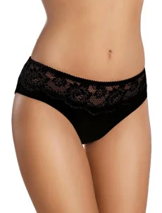 Dámské kalhotky 074 black Gabidar - černá barva - kalhotky mají klasický střih - na přední straně mají lehce průhledný tyl zdobený květovaným vzorem - sed je zesílený látkou - romantický design