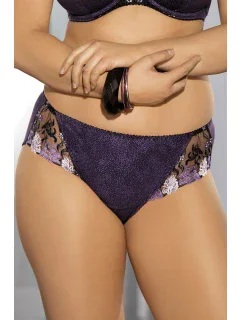 Dámské kalhotky 1090 Ava - fialová barva - klasický střih, lehce zvýšený pas - na bocích mají krajku s výšivkou - sed je zesílený látkou zdobenou vzorem - zajímavý design