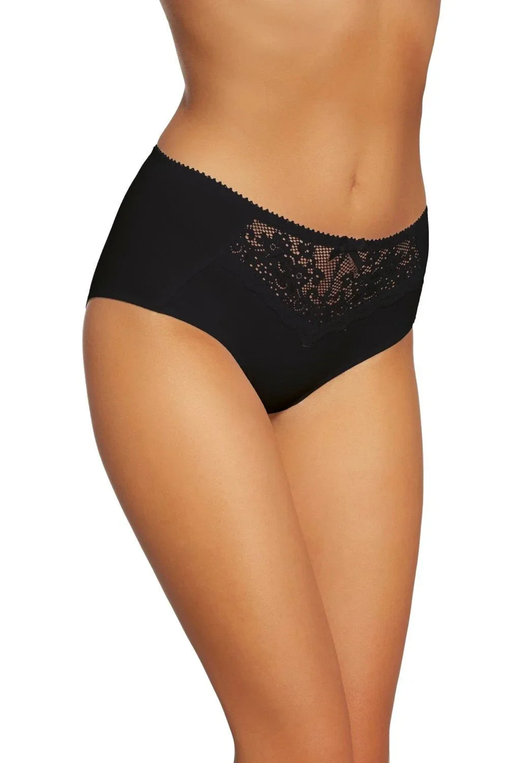 Dámské kalhotky 126 black GABIDAR - černá barva - klasický střih - plnější boky - přední díl zdobený krajkovou vsadkou s květinovým motivemMateriálové složení: 95% bavlna + 5% elastan