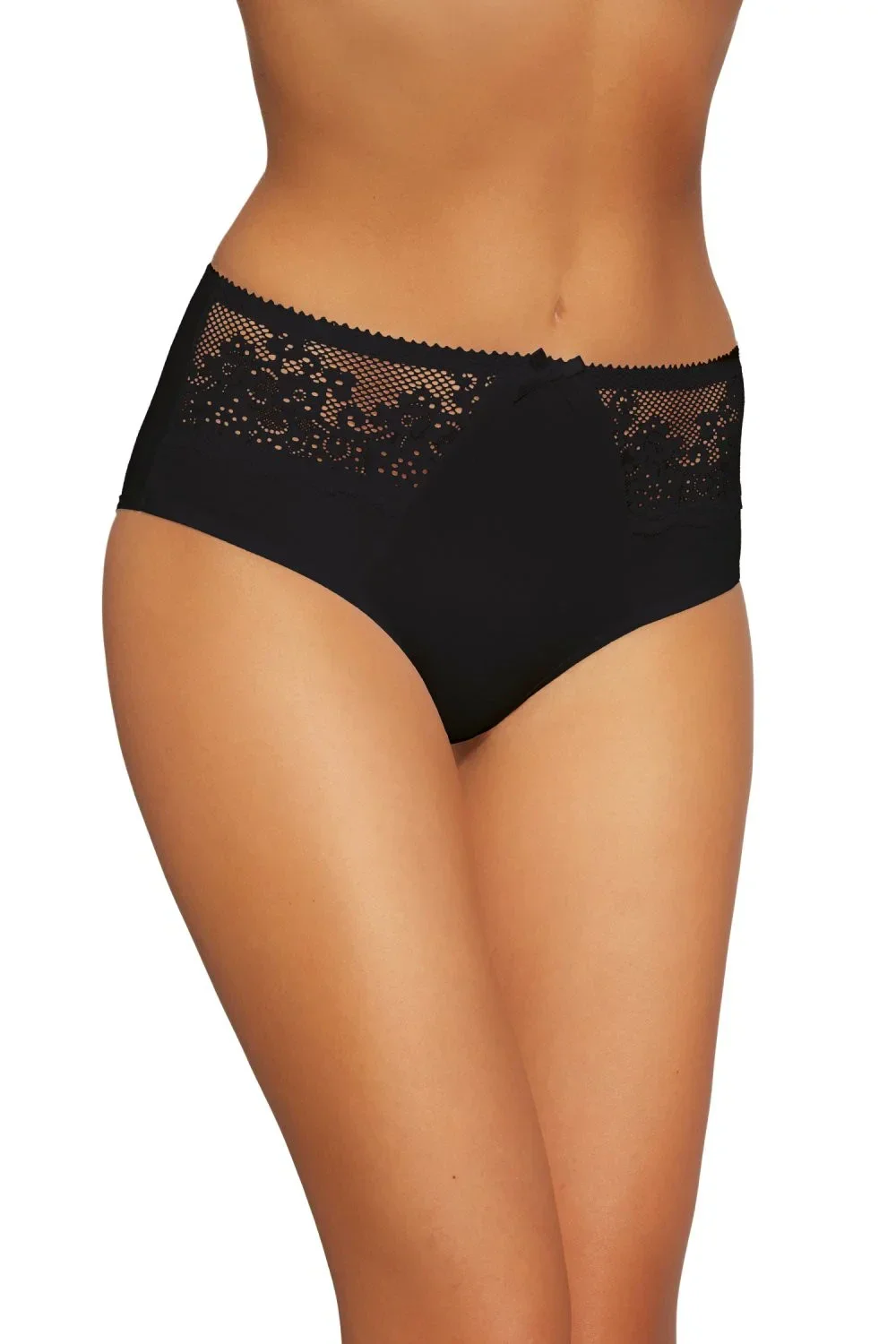 Dámské kalhotky 136 black Gabidar - černá barva - kalhotky mají klasický střih a zvýšený pas - přední strana je zdobená jemnou květovanou krajkou - romantický design - na horním lemu roztomilá mašličkaMateriálové složení: 95% bavlna + 5% elastan