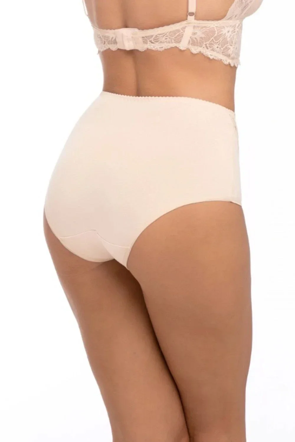 Dámské kalhotky 174 beige BABELL - béžová barva - jsou ušité z vysoce kvalitní a měkké bavlny - mají zvýšenou linii pasu - přední část ozdobená efektní jemnou krajkou - zadní část hladká - vnitřní část rozkroku kalhotek je podšitá bavlněnou látkou