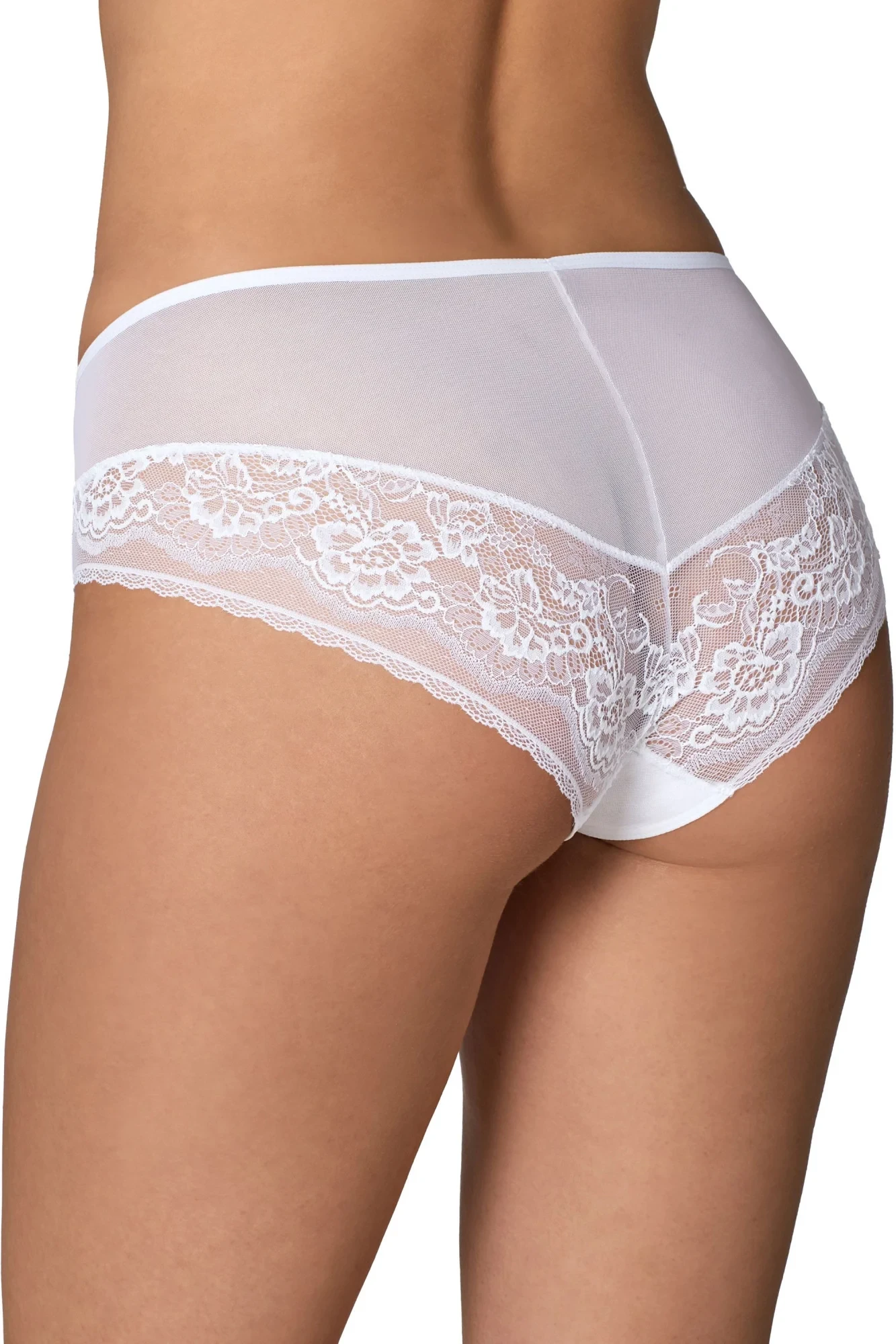 Dámské kalhotky 1824/1 Venus white AVA - bílá barva - klasický střih - z krajky s květinovým motivem - ozdobené vsadkami z jemné tylové síťoviny