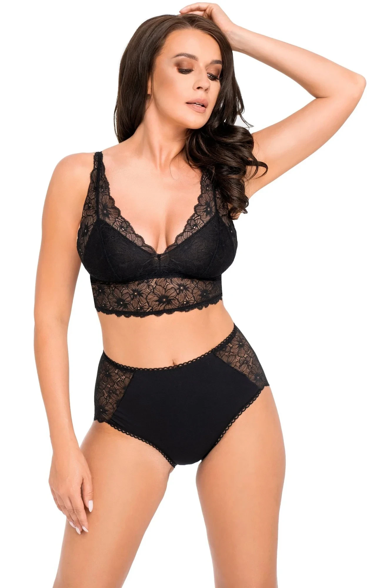 Dámské kalhotky 190 black BABELL - černá barva - z velmi kvalitní a jemné bavlny - vyšší pas - zdobená efektní krajkou s květinovým motivem