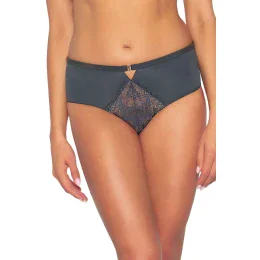 Dámské brazilky 1937/b Yucca antracit AVA - antracitová barva - typ brazilky - z velmi kvalitního a příjemného mikrovlákna - krajková vsadka s podšívkou z béžové síťoviny - zadní díl z hladké látky a dvojitého tylu