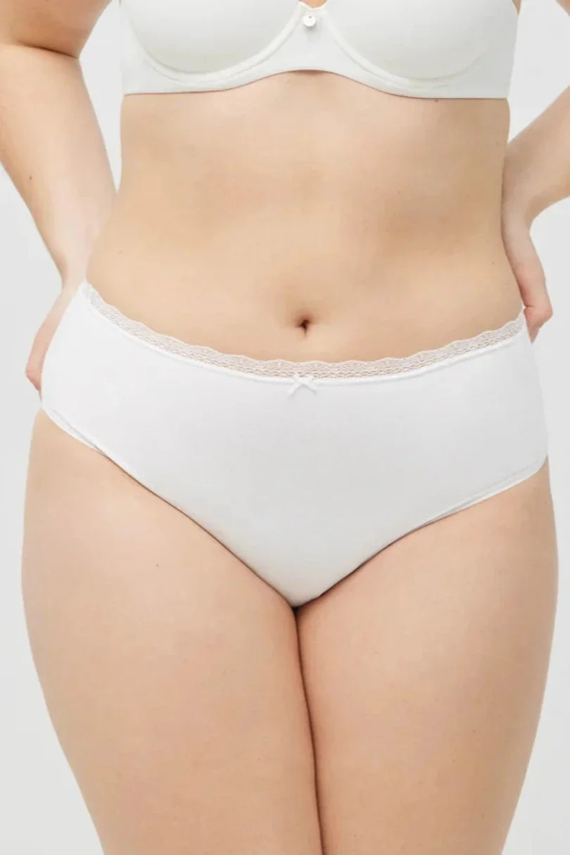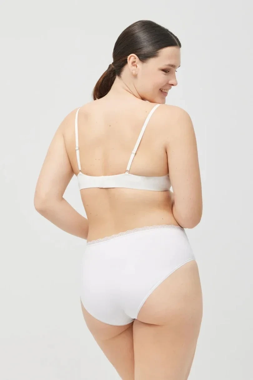 Vlněné dámské kalhotky, jemně zdobené na nohavičkách, v pase úzká bavlněná krajka.