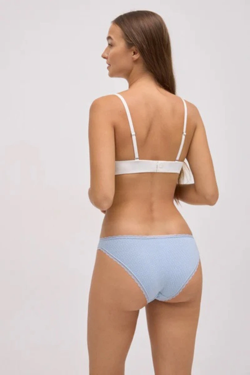 Zestaw dwóch par fig damskich w odcieniach błękitu to połączenie wygody, kobiecości i delikatnego stylu. Wykonane z miękkiej, oddychającej bawełny, idealnie dopasowują się do sylwetki, zapewniając komfort przez cały dzień. Jedna para utrzymana jest w klasycznym, jasnoniebieskim kolorze z subtelnym wzorem kropek, druga – w głębszym odcieniu granatu z drobnym, kwiatowym motywem. Ozdobne, koronkowe wykończenie w pasie i przy nogawkach dodaje im romantycznego charakteru, jednocześnie zachowując pełną funkcjonalność.
