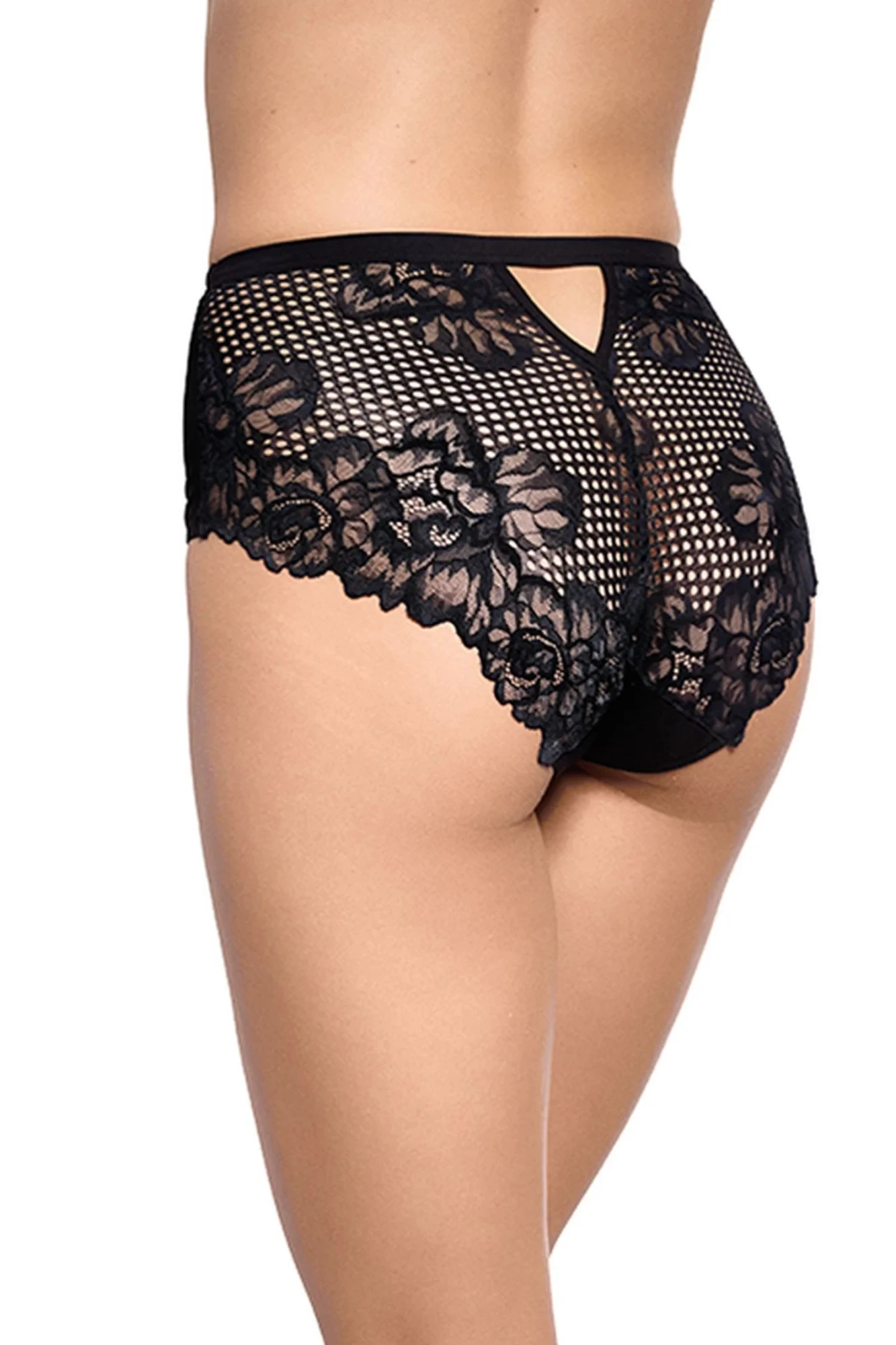 Dámské kalhotky 201 black GABIDAR - černá barva - z vysoce jakostní bavlny - vyšší pas - přední část hladká - zadní část z ažurové krajkyMateriálové složení: 95% bavlna + 5% elastan