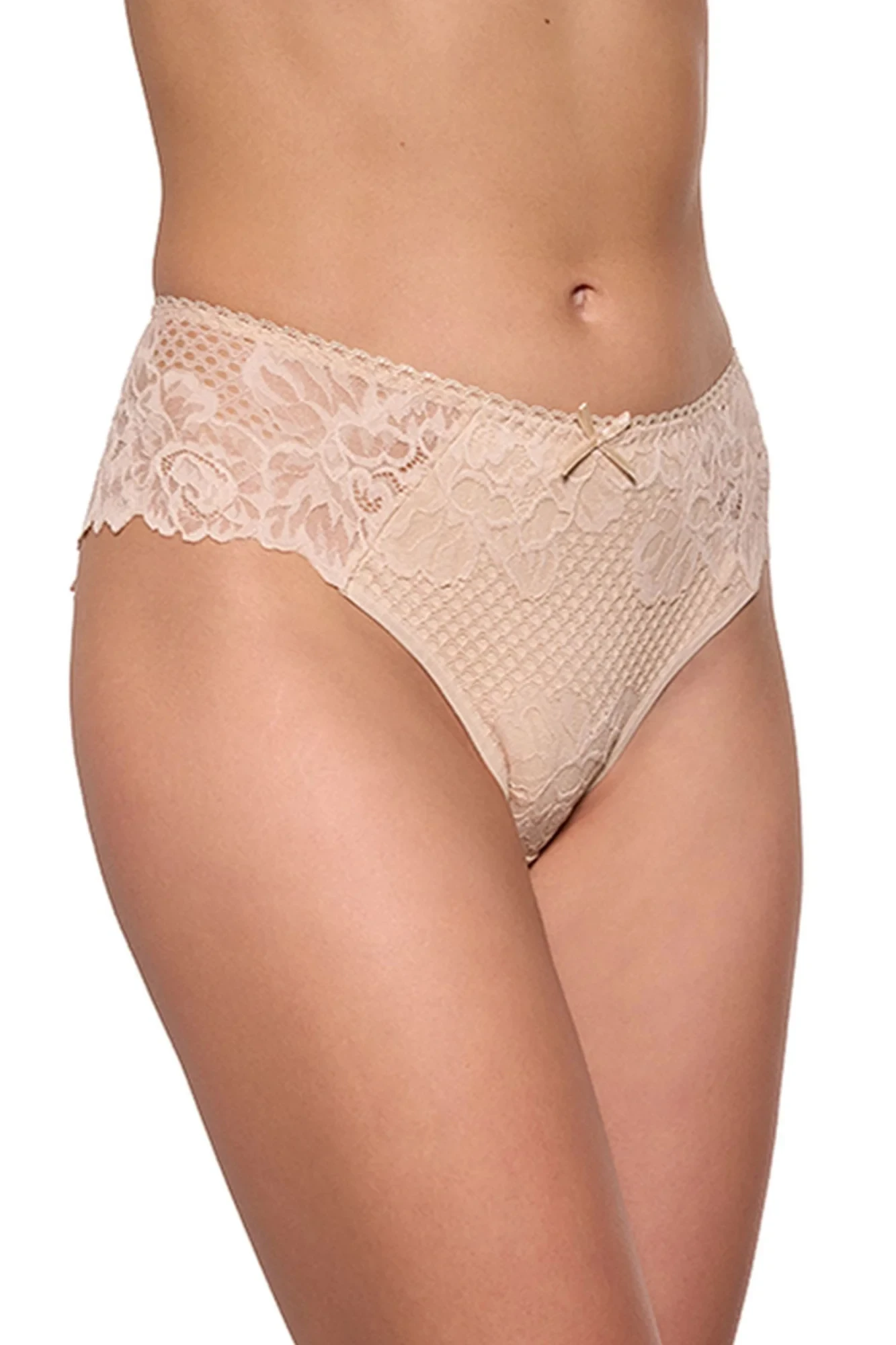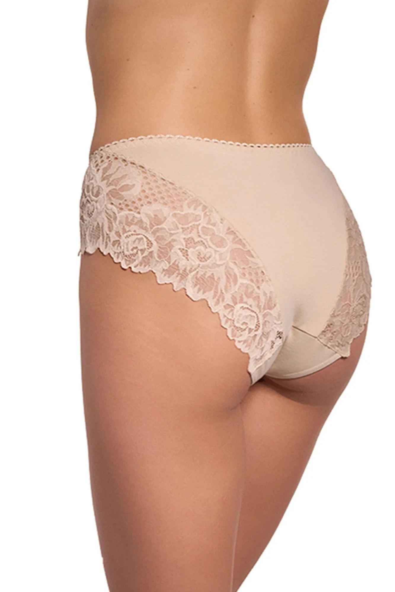 Dámské kalhotky 202 beige GABIDAR - béžová barva - z vysoce jakostní bavlny - klasický střih - zdobené krajkou s květinovým motivem - v pase saténová mašlička