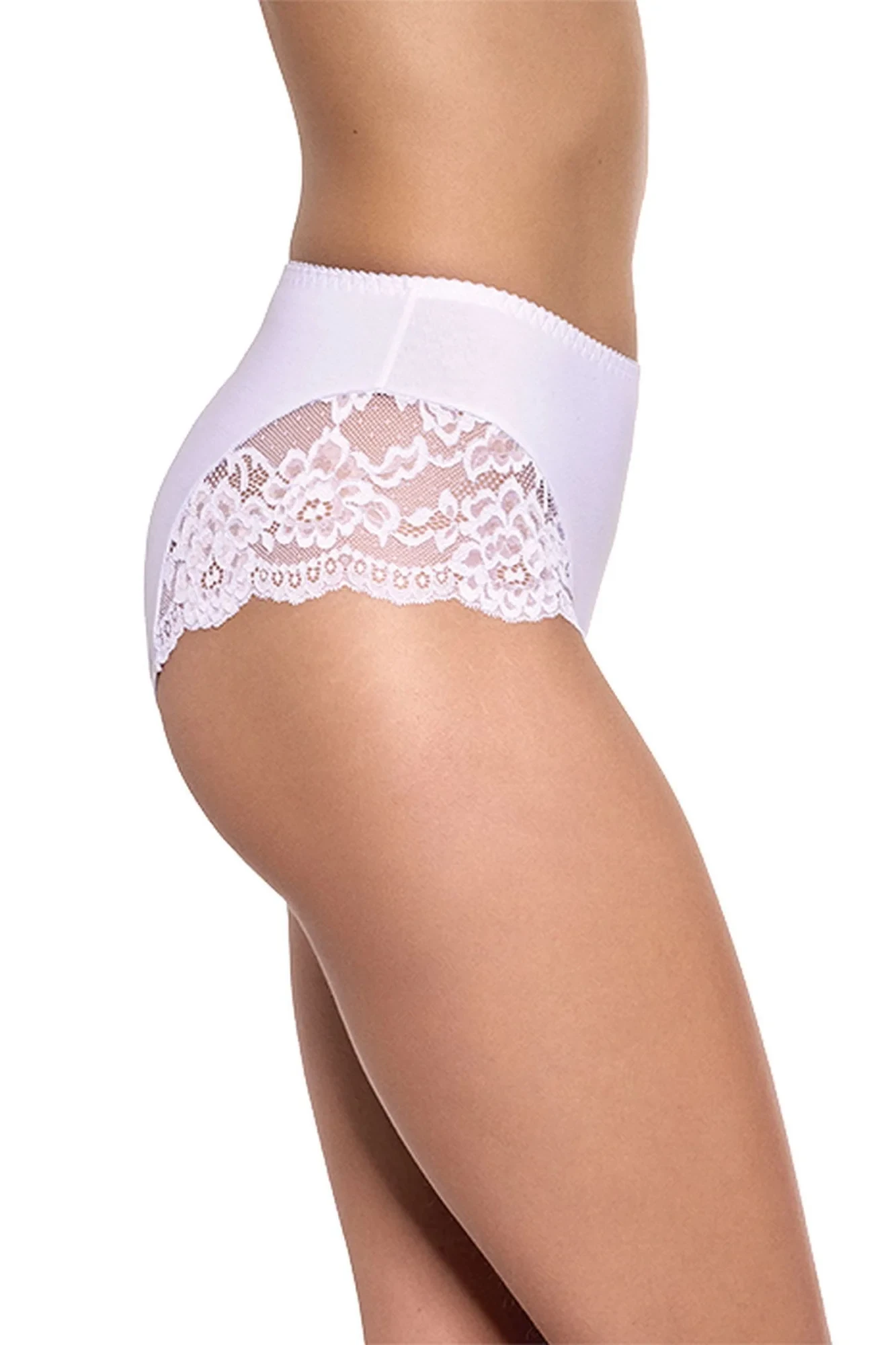 Dámské kalhotky 207 white GABIDAR - bílá barva - z vysoce jakostní bavlny - boční části zdobené krajkou - vyšší pasMateriálové složení: 95% bavlna + 5% elastan
