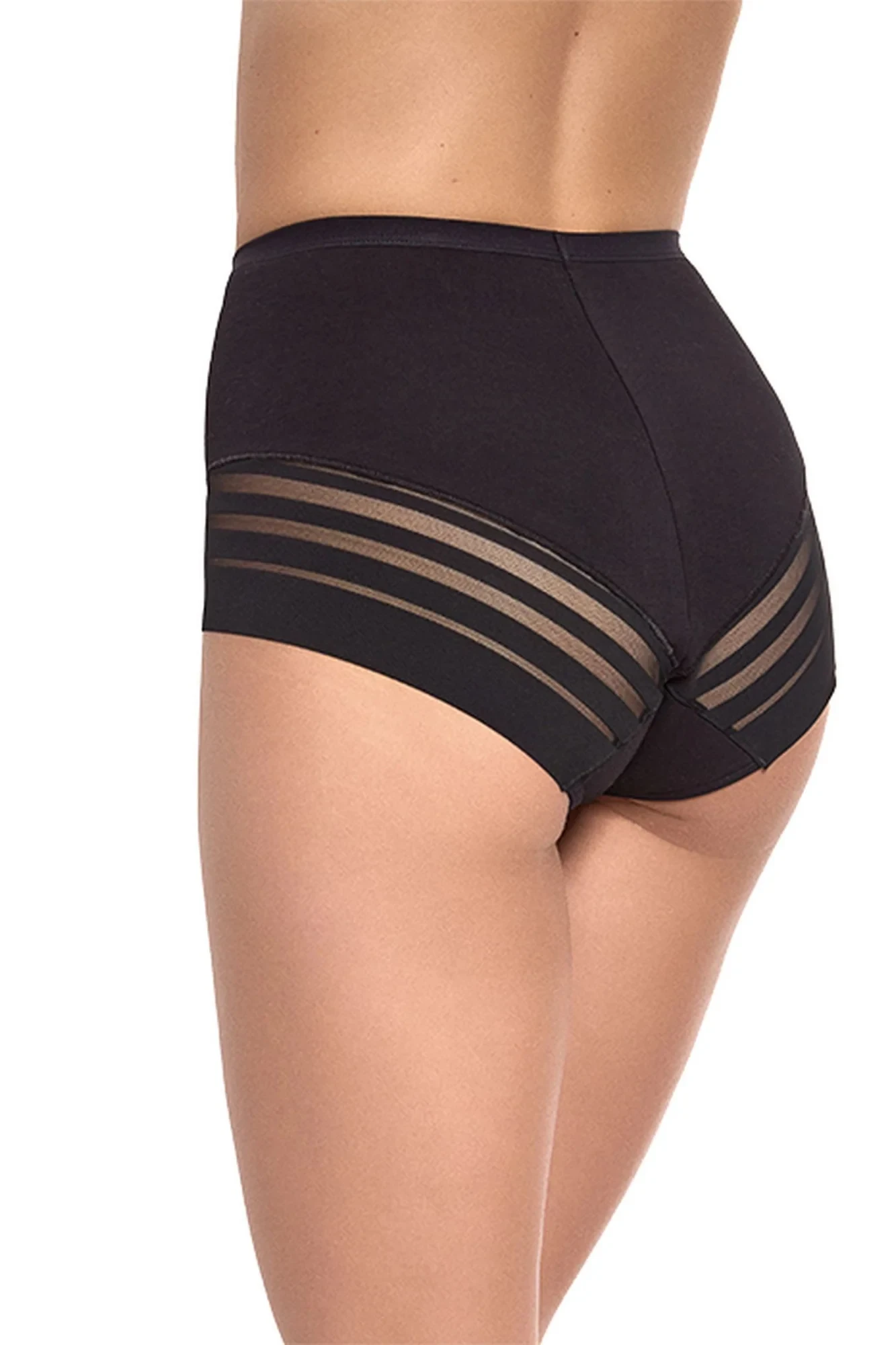 Dámské kalhotky 209 black GABIDAR - černá barva - z vysoce jakostní bavlny - zadní i boční část zdobená transparentními proužky - vyšší pas