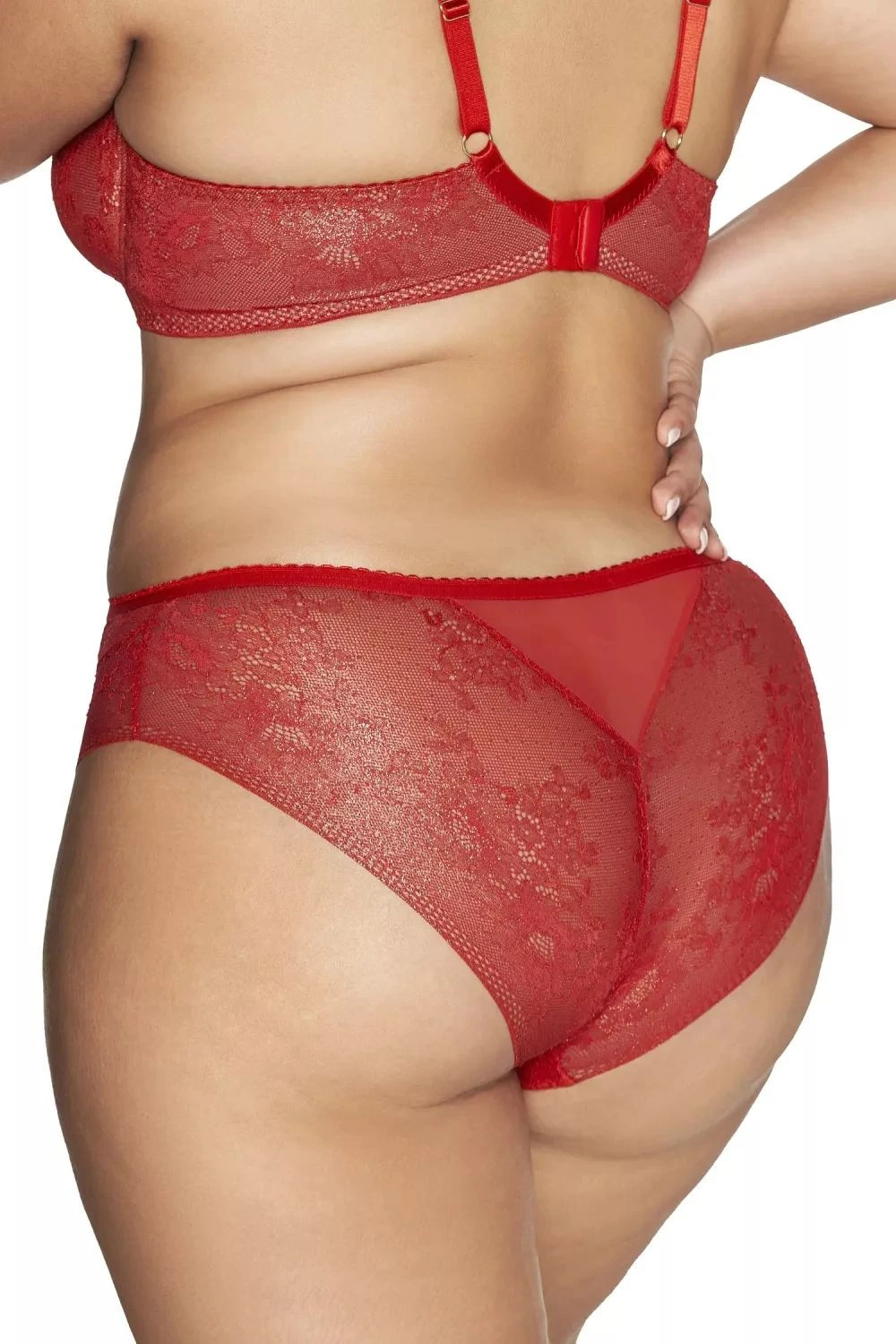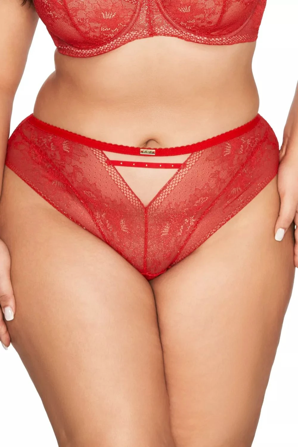 Dámské kalhotky 2127 Crown AVA - červená barva - přední část a boky zdobené krajkou podšitou béžovou látkou - krajka zdobená zlatým popraškem