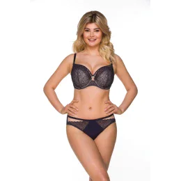 Kalhotky jsou vyrobené z tmavě modré krajky, mikrovlákna a síťoviny v tělové barvě.