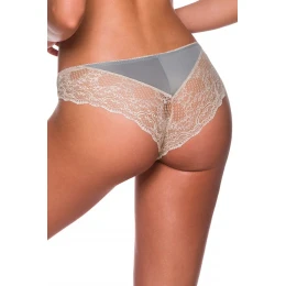 Přední díl kalhotek je vyrobený ze šedého mikrovlákna, na které je našitá krajka. Boky modelu jsou krajkové. Zadní díl kalhotek tvoří v horní části mikrovlákno a spodní část lemuje krajka.