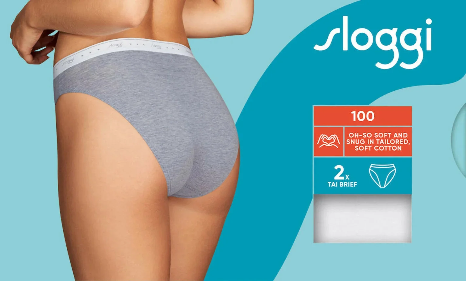 Značkový styl! Toto balení 2 kusů kalhotek tai z řady sloggi 100 nezapřou svou značku na pohled ani na dotek. Milujeme tyto úžasně hebké a nenucené kalhotky tai.
