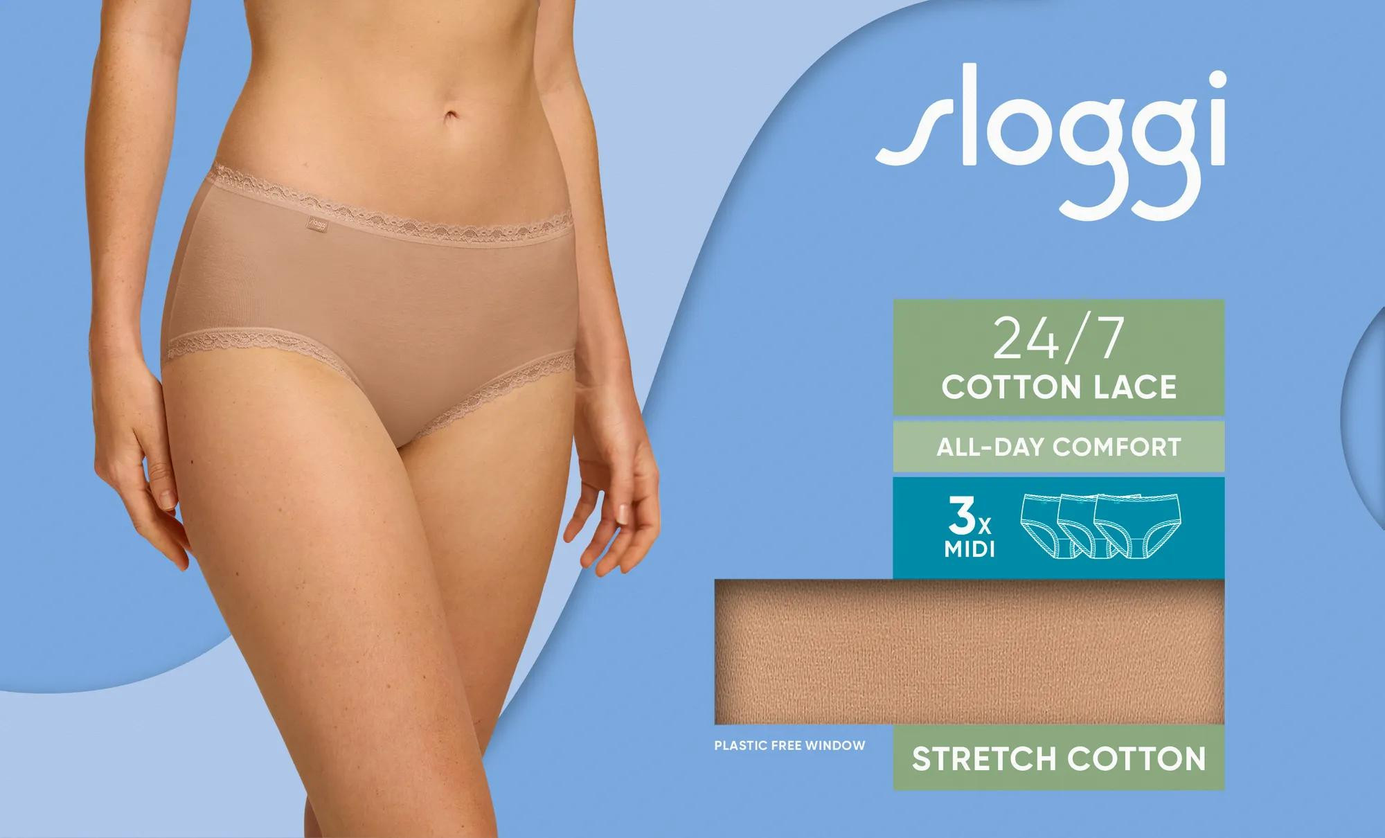 Tyto kalhotky midi z řady 24/7 Cotton Lace od sloggi vám zajistí až neuvěřitelné pohodlí a čistý a svěží vzhled. Maximální každodenní pohodlí po celý týden.