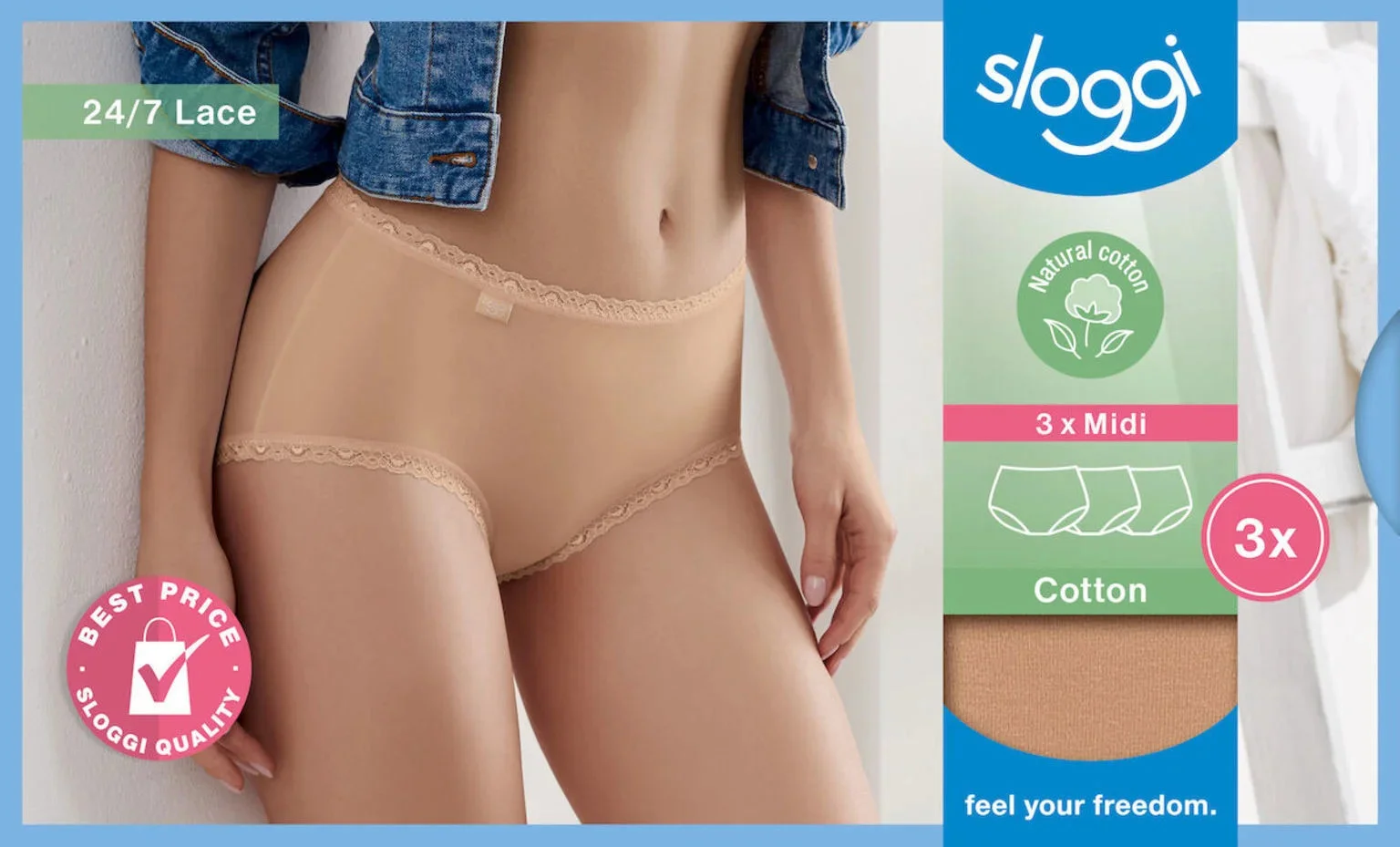 Dámské kalhotky 24/7 Cotton Lace Midi C3P - BRUSH - tělové 6239 - SLOGGI