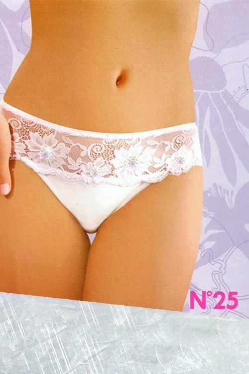 Luxusní dámské kalhotky EWANA 25 jsou jemně elastické a zdobené krásnou krajkou.Materiálové složení: 85% polyamid + 15% elastan