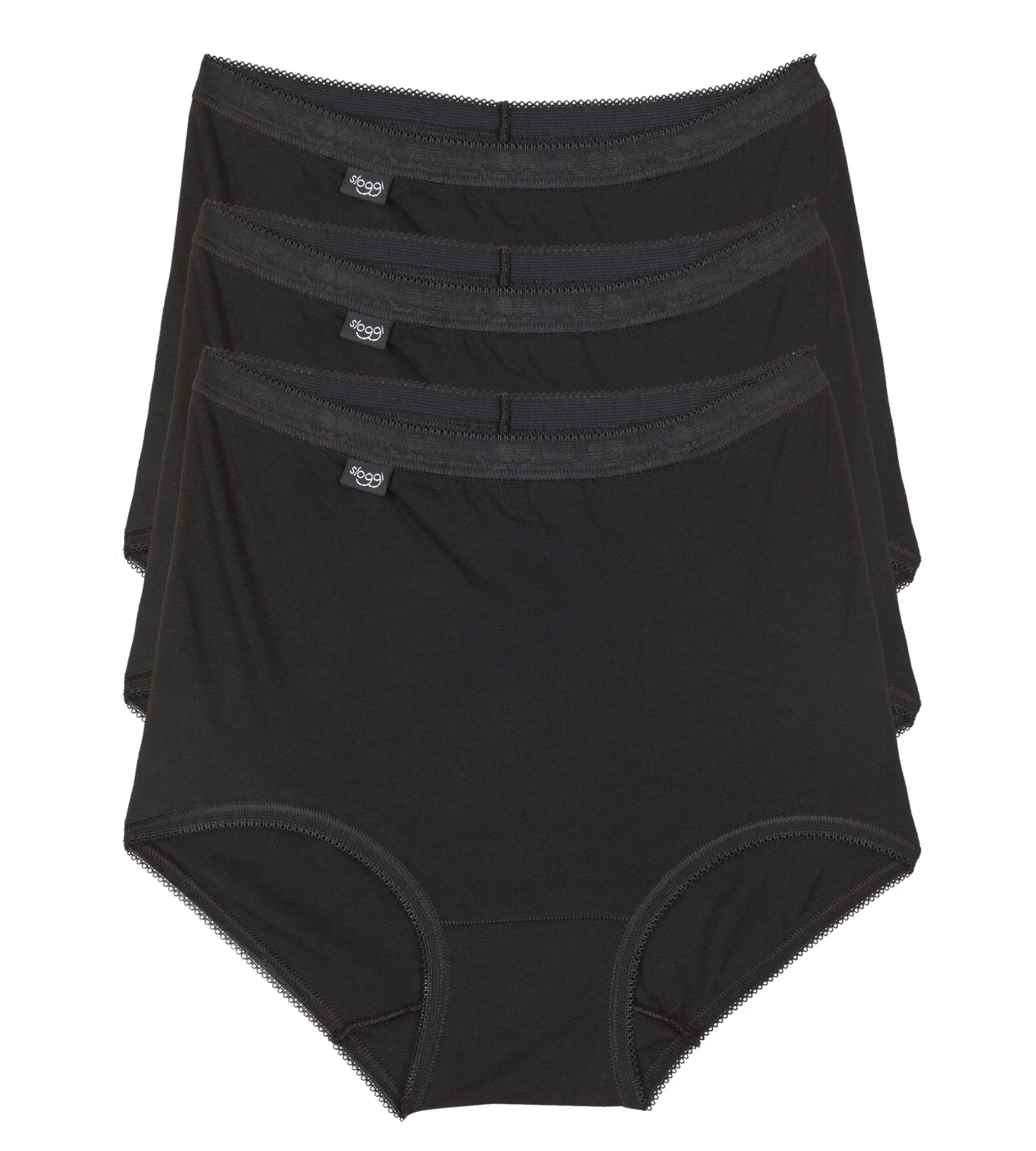 Produkt Dámské kalhotky 3 pack Basic maxi black - Sloggi prodáváme v těchto velikostech: L, XL, 3XL, 4XL, M, 5XL, 6XL, 7XLa barvách černá7613138203224, 7613138203231, 7613138203255, 7613138203262, 7613138203217, 7613138203279, 7613138203286, 7613138203293