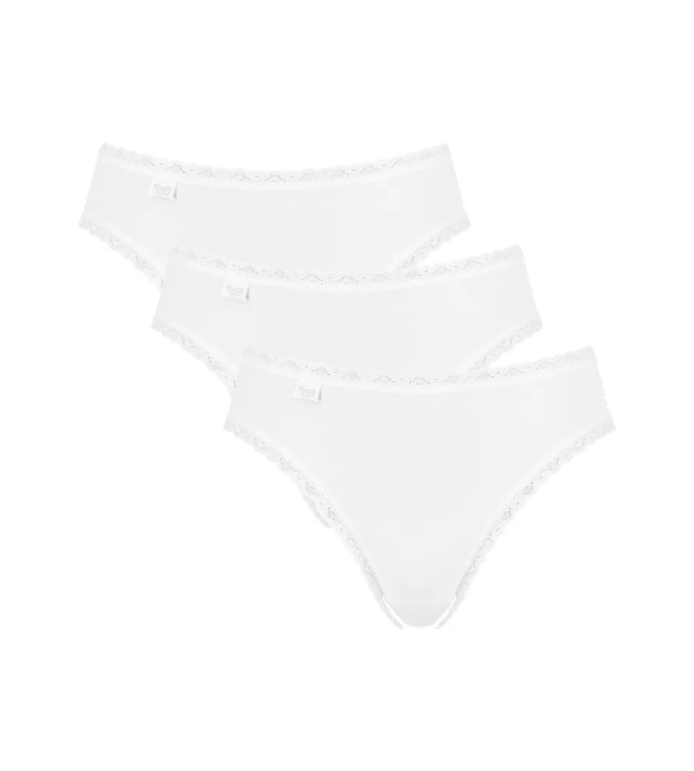 Produkt Dámské kalhotky 3 pack Cotton Lace Thai white - Sloggi prodáváme v těchto velikostech: M, 4XL, La barvách bílá7613112895278, 7613112895315, 7613112895285