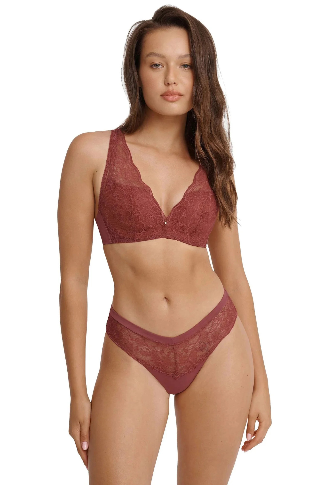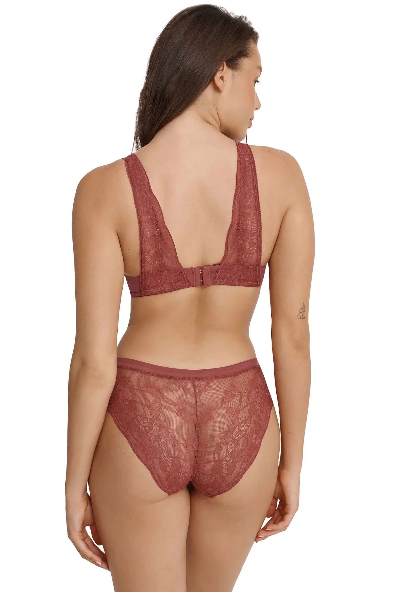 Dámské kalhotky 40990 Gensis HENDERSON - hnědá barva - tylová krajka s květinovým motivem
