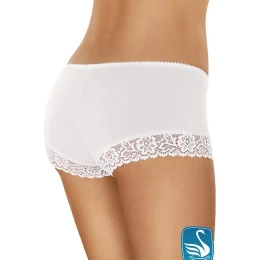 Dámské boxerky 155 Gabidar - bílá barva - jsou z jemné krajky s květovaným vzorem - díky svému střihu krásně tvarují zadeček - sed je zesílený látkou - svůdný a romantický design - na horním lemu mašlička