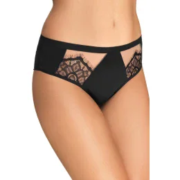 Vysoké dámské kalhotky 616 black Gorsenia - jsou vyrobené z hladkého mikrovlákna - jsou ozdobené vsadkami z transparentní síťoviny - efektní krajka s květinovým vzorem