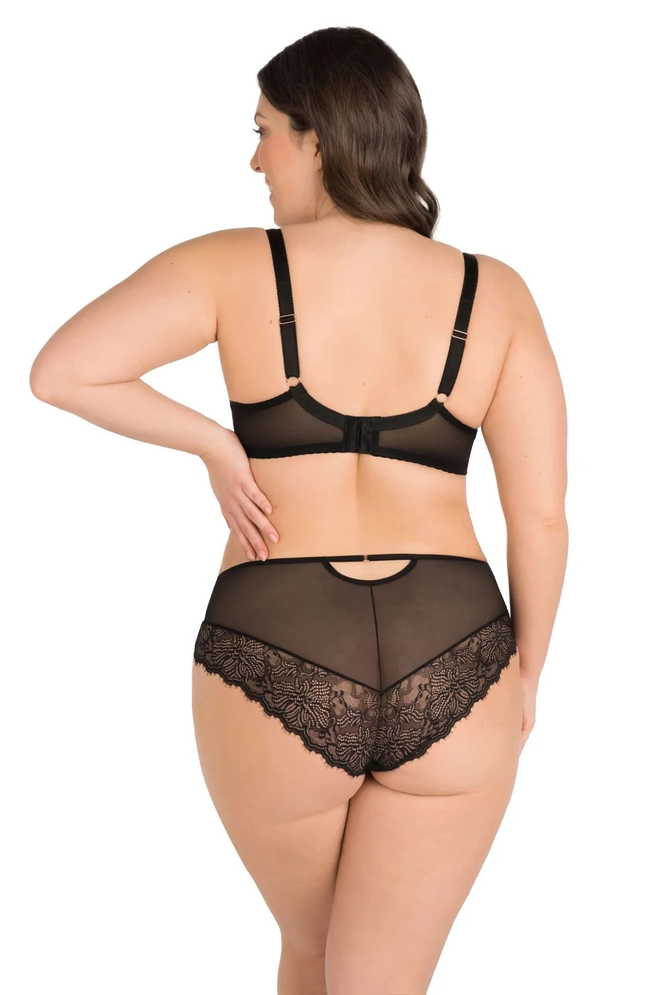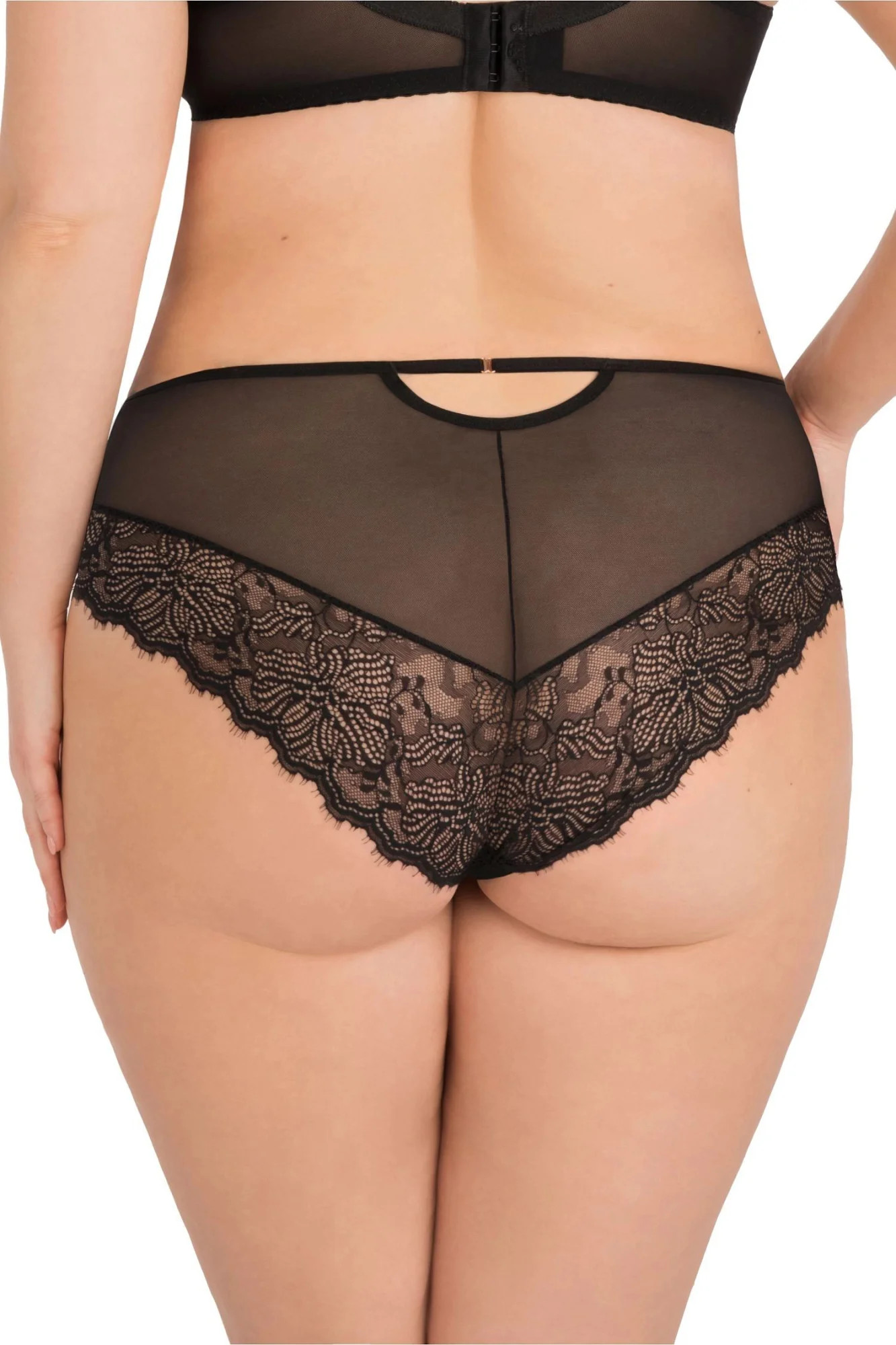 Dámské kalhotky 815 Noelle GORSENIA - černá barva - vyšší pas - kombinace pružné síťoviny a efektní krajky - ozdobný pásek na přední straně