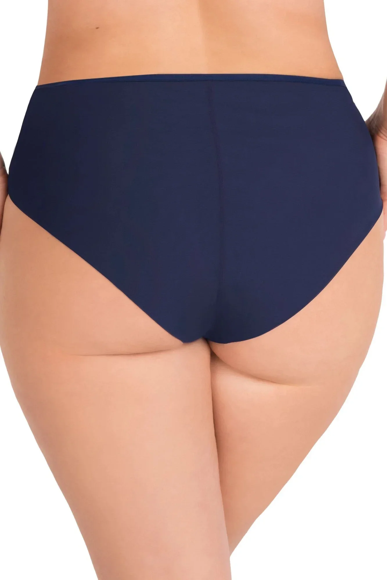 Dámské kalhotky 821 Edna GORSENIA - tmavě modrá barva - kombinace elastického tylu a mikrovlákna - vyšší pas - plné boční části - zadní část z tylové dvojité síťovinyMateriálové složení: 90% polyamid + 7% elastan + 3% polyester