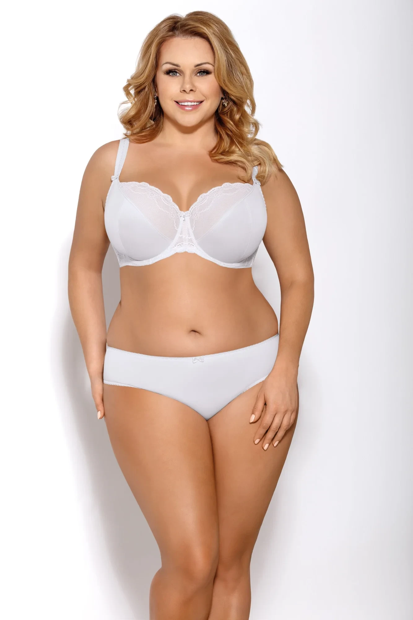 Hladké kalhotky s krásným krajkovým lemem kolem hýždí. Hladká, s mašlí nahoře. Složení: 90 % polyamid, 7 % elastan, 3 % polyester.