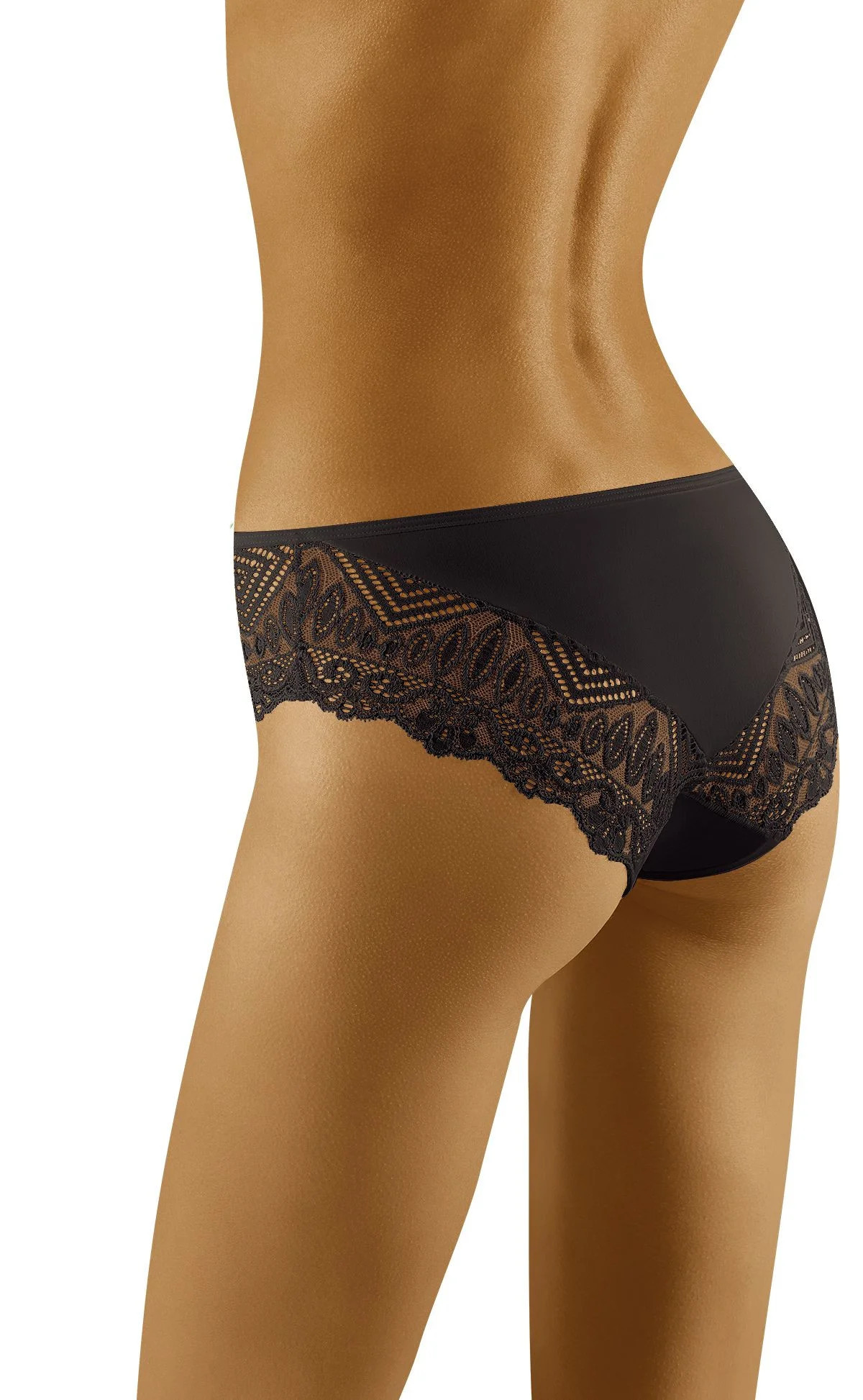 Vysoce kvalitní kalhotky značky Wol-bar, vyrobené z elegantní krajky s jemným geometrickým vzorem a hladké látky. Boky jsou mírně více postavené, ažurové, s průsvitem. Pohled se soustředí na hladkou látku, která na přední straně vytváří pouze štíhlý, sexy trojúhelník. Linie hýždí rovněž s krajkovým akcentem. Složení: 83 % polyamid, 17 % elastan.
