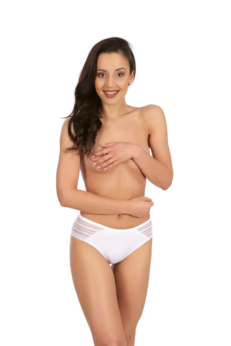 Kalhotky jsou ideálně vypasované. Zadní díl modelu lemuje síťovina. Kalhotky se nerýsují pod oblečením.