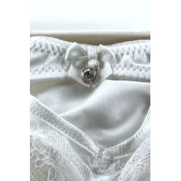 Dámské kalhotky Ali white ROZA - bílá barva - přední část hladká - zadní krajka krajková, ozdobená kytičkou s kamínkem - spodní díl je podšitý bavlnou