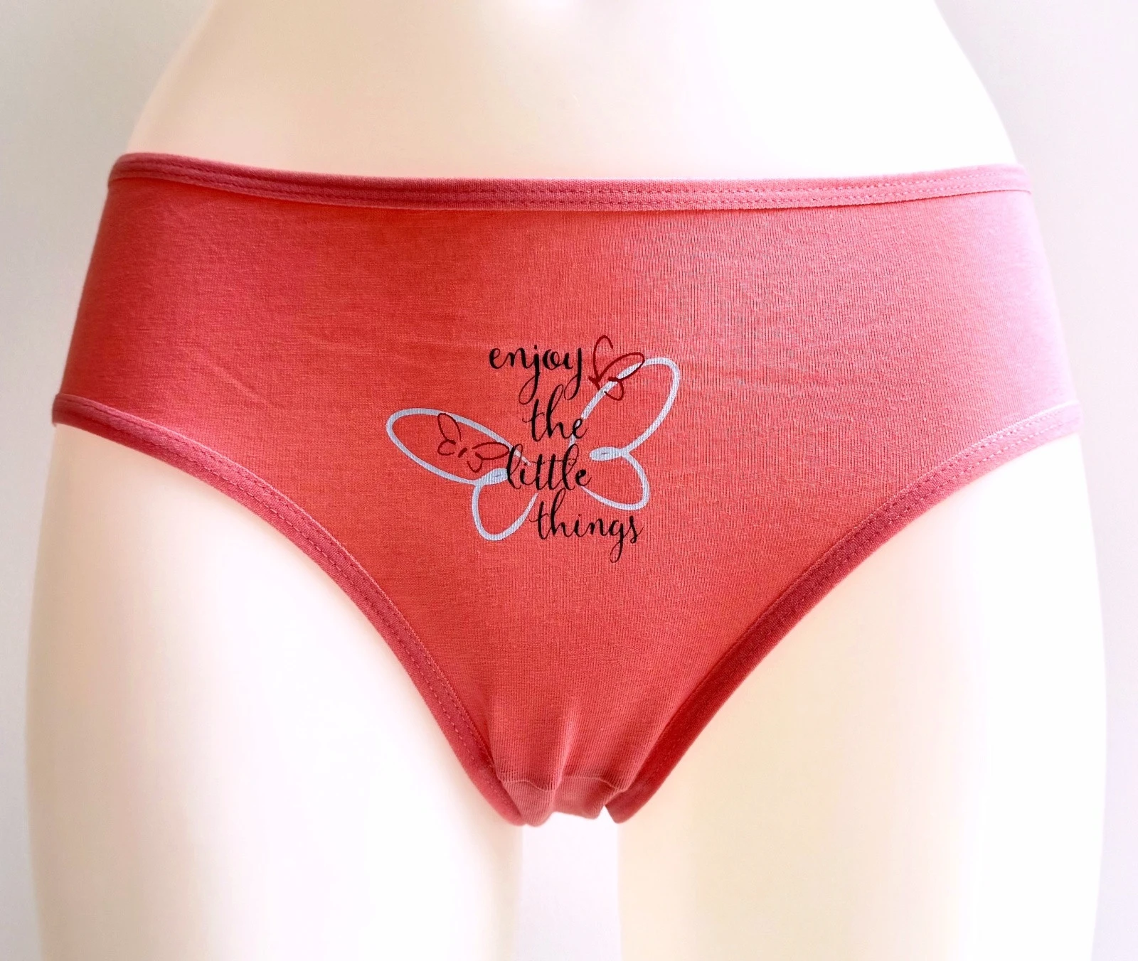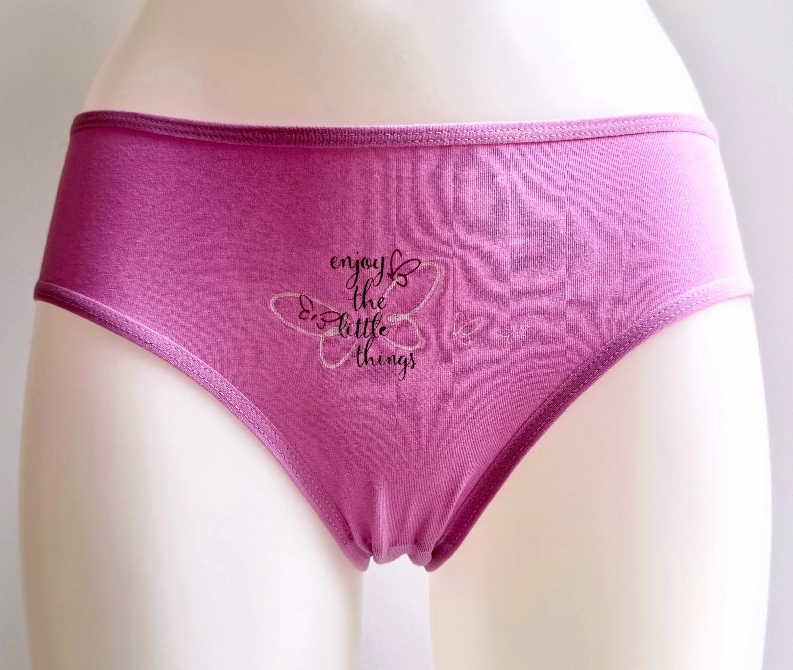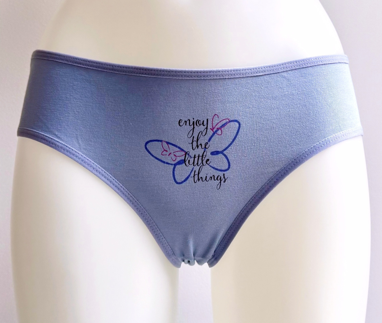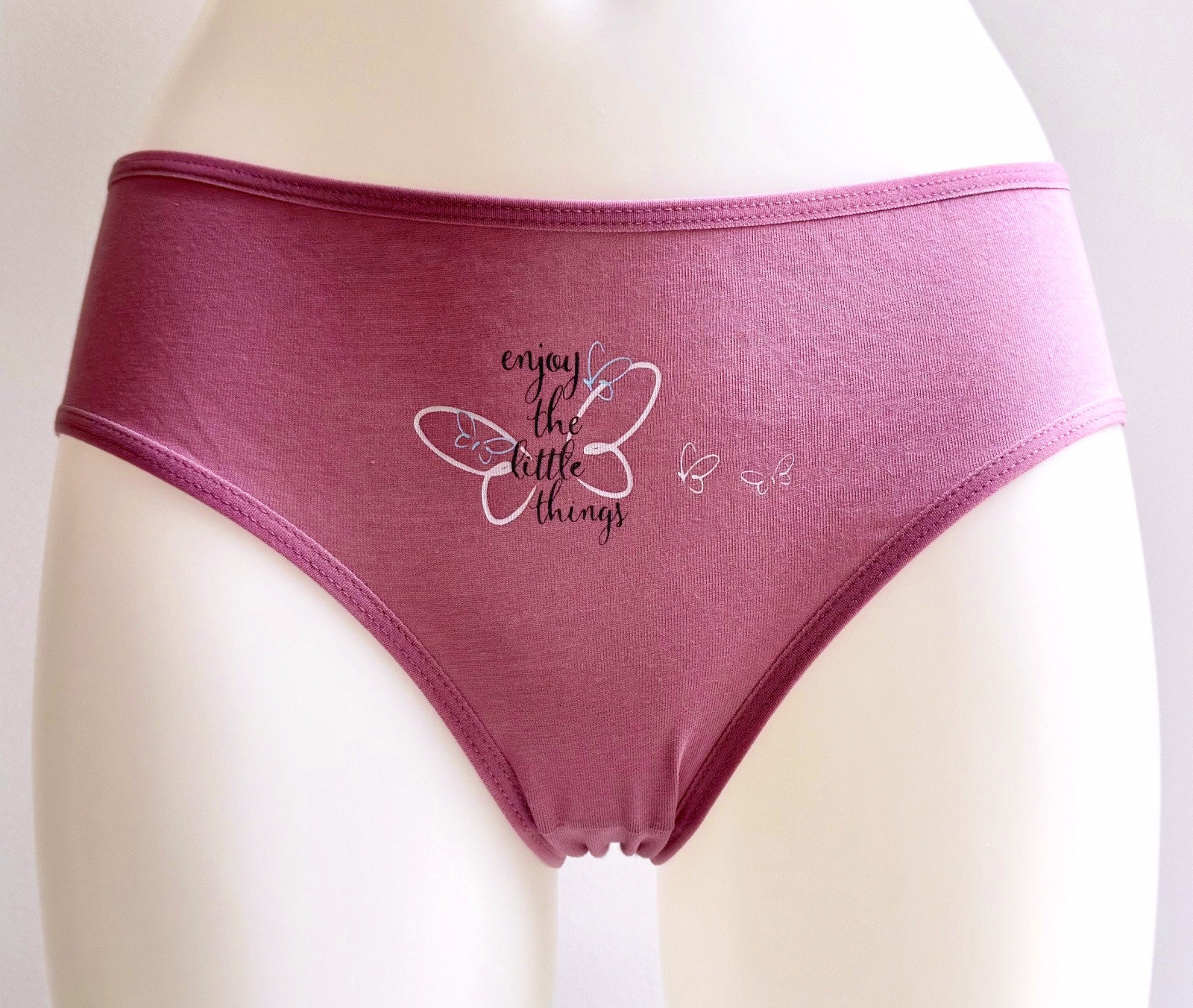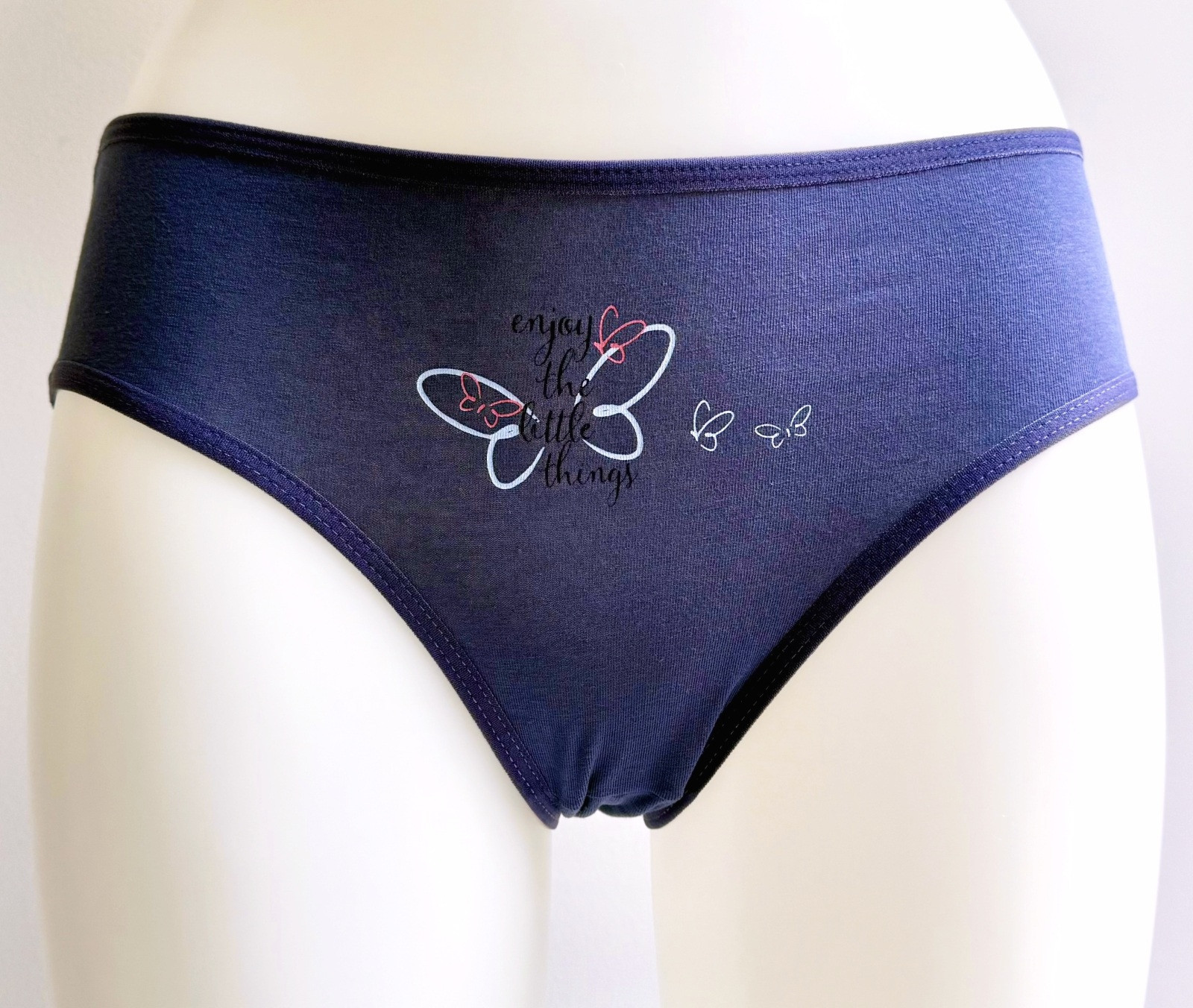 Dámské bavlněné kalhotky Angelika. Klasické kalhotky zdobené obrázkem motýla jsou pohodlným typem spodního prádla pro všechny příležitosti. Obzvláště oceníte materiálové složení - 95% bavlna a 5% elasten. Použitý materiál je příjemný a poddajný na dotek.