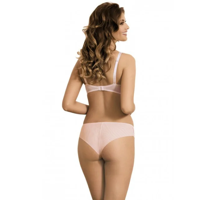Okouzlující kalhotky v jemné světle růžové barvě. Krajka v horní části, vpředu. Vyrobeno z dvojitého, mírně průhledného tylu na zádech. Velmi pohodlné a mimořádně ženské. Složení: 60% polyamid, 20% elastan, 17% polyester, 3% bavlna.